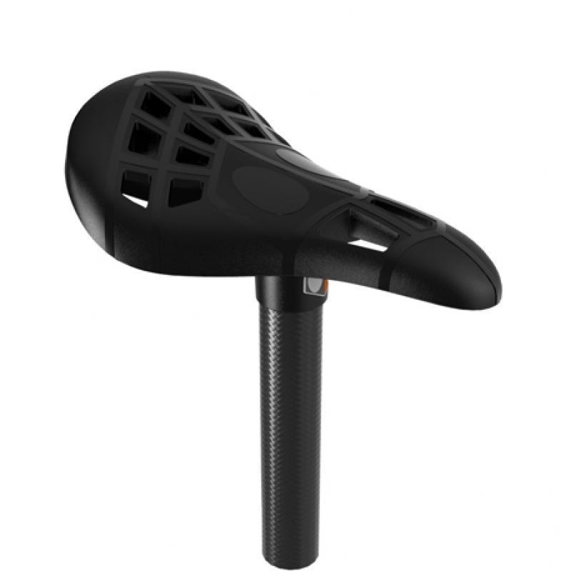 The Co-molded Nylon Shell Saddle offers high quality and durability, designed for comfort and performance. Its ergonomic and lightweight design ensures excellent support and stability on long rides. The Carbon Fiber Seatpost enhances strength and durabilit