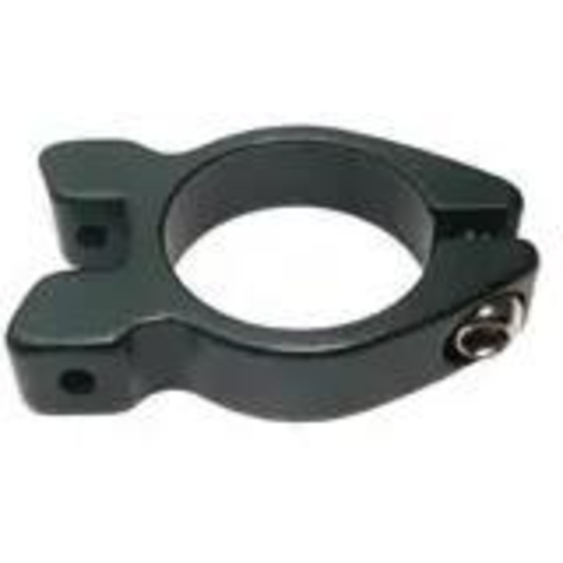 The BPW Seat Clamp 34.9mm w/ Nodes (5mm) for Rear Carrier in black is a reliable and sturdy solution for securing your rear carrier or seatpost. Featuring a 34.9mm diameter, this clamp is designed with additional nodes for enhanced attachment stability. Its durable black finish ensures longevity while providing a sleek look. Easy to install and adjust, this clamp is perfect for cyclists looking to enhance their bike’s functionality.