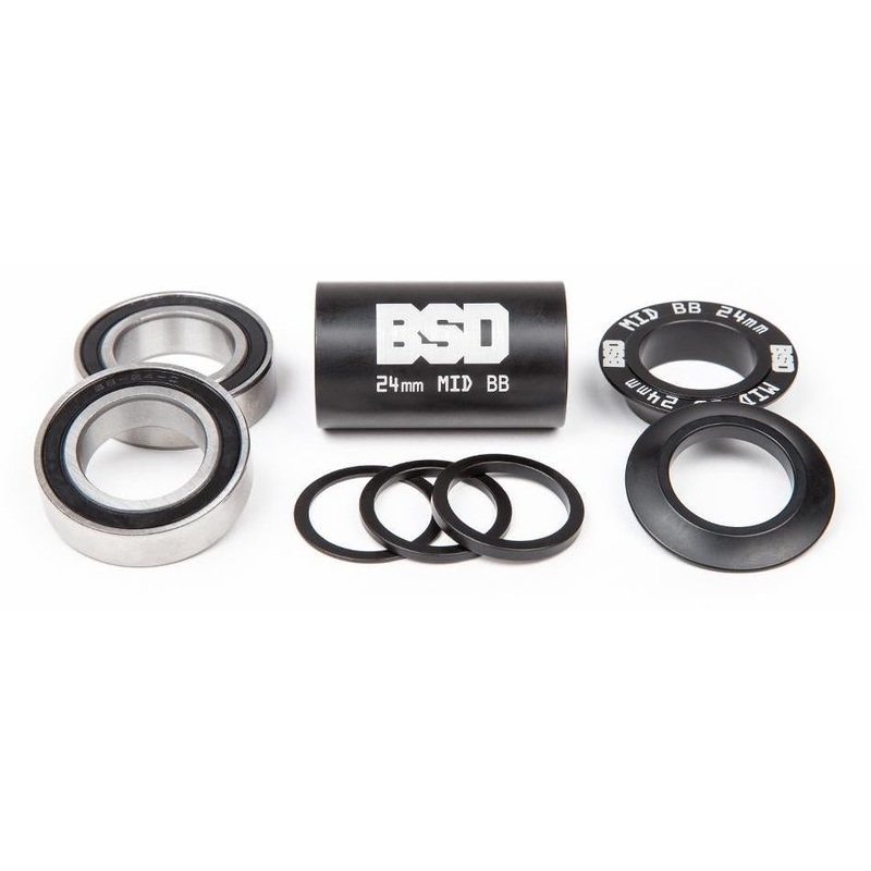 The BSD Substance XL Mid BB Set is designed for 24mm crank spindles, offering optimal performance and durability. It features precision sealed cartridge bearings for a smooth ride and includes fully CNC'd 6061 aluminum spacers for exceptional strength. The