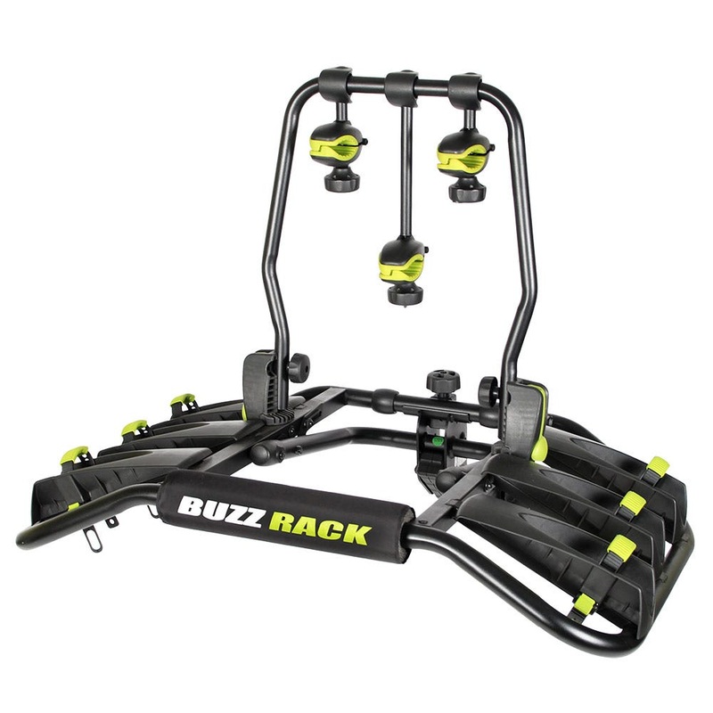 The Buzzrunner H3 is one of Buzzracks latest hitch mounted carrier and is built to carry three bikes. The Buzzrunner H3 is lightweight at just 15.8kg for a 3 bike carrier and offers reliable bike transport for up to bikes up to 15kg each. The wheel holders