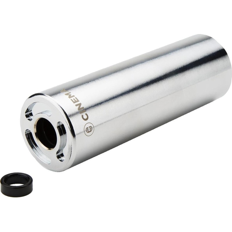 The Cinema S45 Axle Peg is crafted from heat-treated SCM415 chromoly steel, offering a balance of durability and lightness for BMX bikes. Measuring 4.5 inches, it incorporates internal butting and external reliefs to minimize weight while maintaining strength. The peg undergoes a forging process for enhanced durability and CNC machining for a smooth finish. Sold individually, it is compatible with both 10mm and 14mm axles, providing versatility for riders.